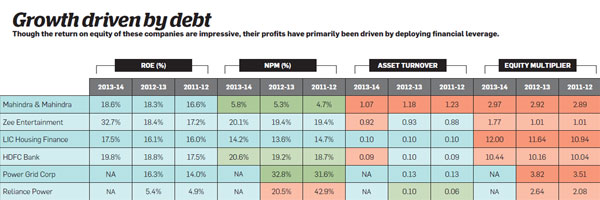 While Reliance Power has also used leverage to heave its RoE at 5% information technology has nevertheless not been able to evangelize higher render than its cost of equity to its shareholders. Mahindra & Mahindra has succeeded in improving RoE to 19%, but by and large on of 33%, Zee Entertainment may look similar a fundamentally strong company, but its increasing leverage coupled with near-stagnant profit margins and asset turnover suggests that the visitor is not using resource efficiently. Zee is the most vivid case of why it is of import to analyse the components of RoE. Had we relied purely on the RoE metric, it would have led us to believe that Zee is in a much stronger position than it actually is.